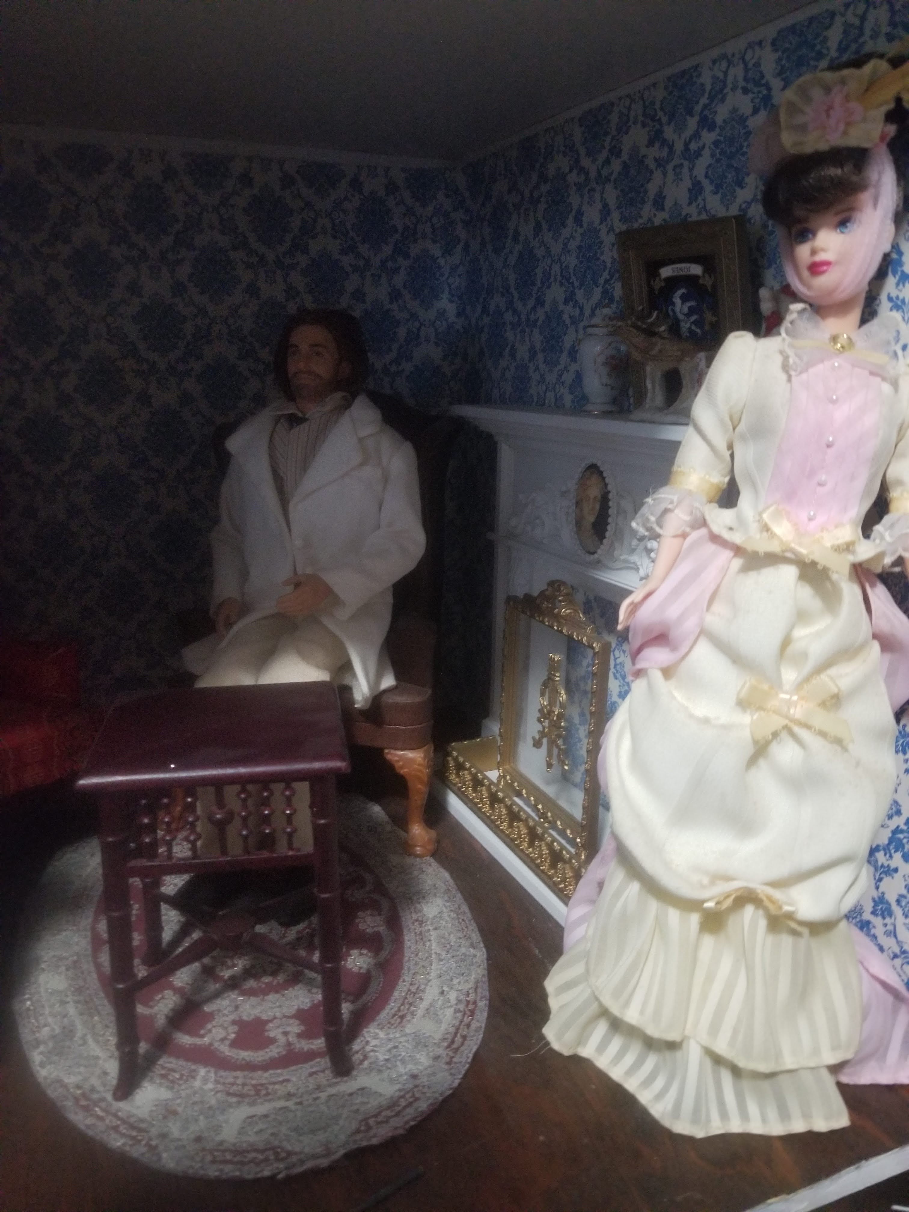 I have been organizing this house so it is Victorian era only with props and figuring out what else is needed. I need more beds in the other bedroom and possibly a sewing machine for Caroline Ingalls, and chairs for the dining room. More to come!